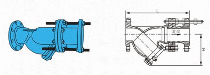 不銹鋼Y型拉桿伸縮過濾器外形結(jié)構(gòu)圖:
