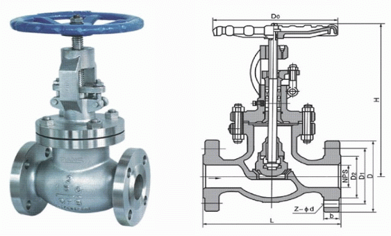美標(biāo)不銹鋼截止閥外形結(jié)構(gòu)圖: