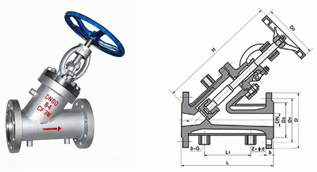 夾套保溫直流式截止閥外形結(jié)構(gòu)圖: