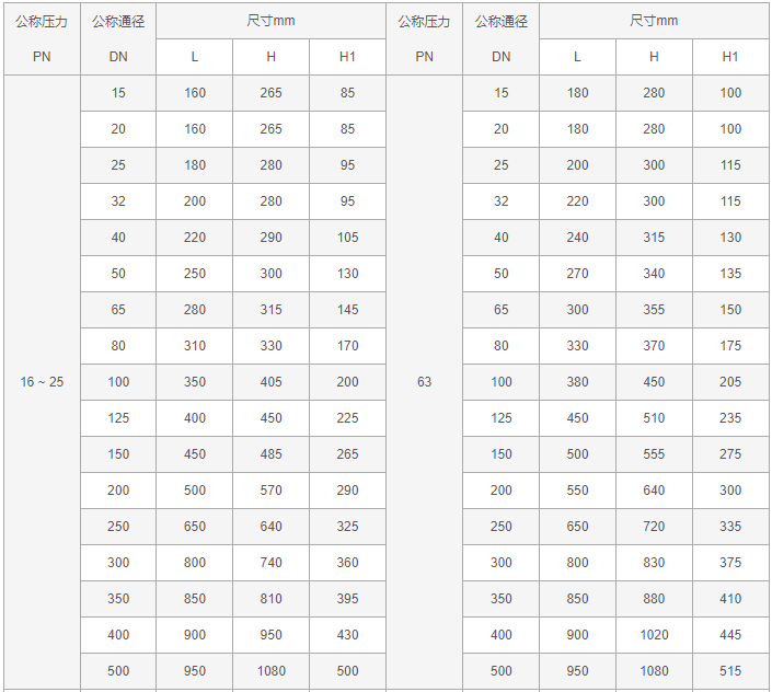 高靈敏度大流量蒸汽減壓閥外形尺寸表: