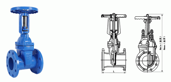 法蘭明桿閘閥外形結(jié)構(gòu)圖: