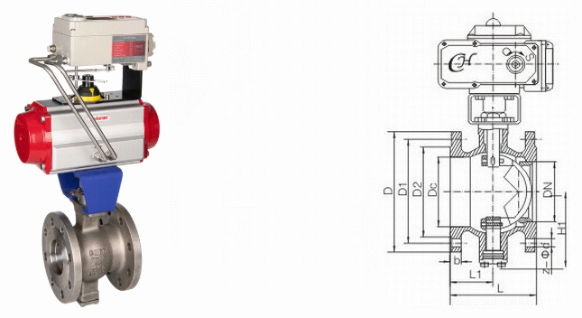 氣動V型切斷閥外形結(jié)構(gòu)圖: