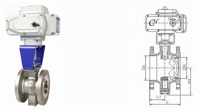電動V型切斷球閥外形結(jié)構(gòu)圖: