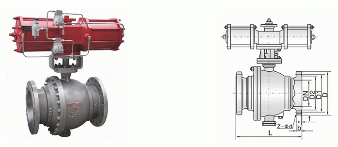 氣動(dòng)調(diào)節(jié)球閥外形結(jié)構(gòu)圖: