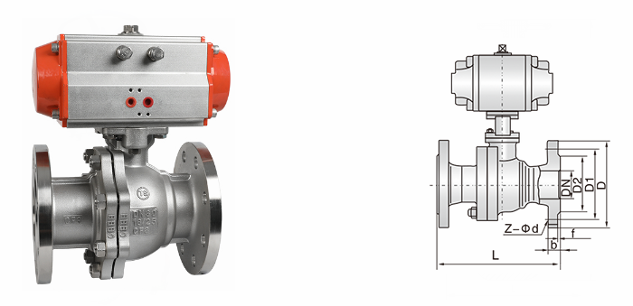氣動不銹鋼球閥外形結(jié)構(gòu)圖: