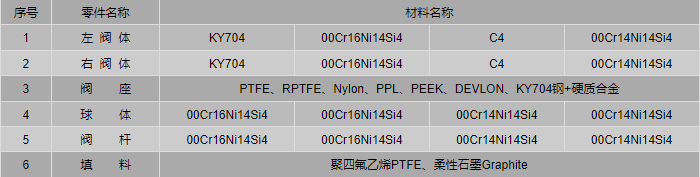 KY704不銹鋼球閥零件材料:
