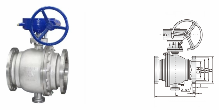 蝸輪固定式球閥外形結(jié)構(gòu)圖: