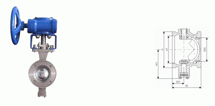 對夾式V型球閥外形結(jié)構(gòu)圖: