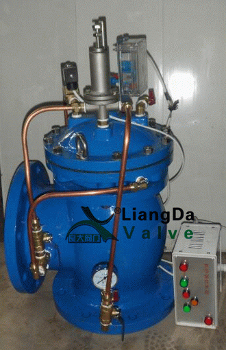 水擊預(yù)防閥由主閥、高壓水力導(dǎo)閥、電磁導(dǎo)閥、低壓壓力開關(guān)、導(dǎo)管、電子控制箱等零部件組成。具有水力自動(dòng)控制、電子自動(dòng)控制、高壓無條件開啟泄水、低壓提前開啟、斷電開啟、斷電并伴隨低壓開啟泄除水錘及預(yù)防水錘的功能。主閥能快開緩閉,具有防止自身關(guān)閥水錘的功能。水擊預(yù)防閥用于水泵出口主輸水管道上,靠近水擊發(fā)生源如止回閥等,用T型三通外接,能提前開啟預(yù)防水錘并無條件泄除高壓水錘,是泵站安全的重要預(yù)防及保護(hù)設(shè)備,能有效地提高系統(tǒng)安全可靠性。