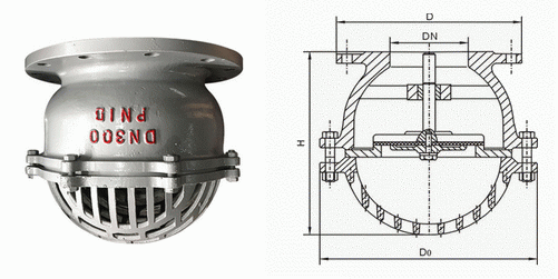 升降式底閥是一種節(jié)約能源的閥,一般安裝在水泵水下吸管的底端限制水泵管內(nèi)液體返回水源,起著只進(jìn)不出的功能。閥蓋上有很多個(gè)進(jìn)水口和加強(qiáng)筋起到了不易堵塞,主要應(yīng)用在抽水的管路上水道和支承的作用。安裝在水泵底部防止水的倒流,連接方式有法蘭連接和螺紋連接。