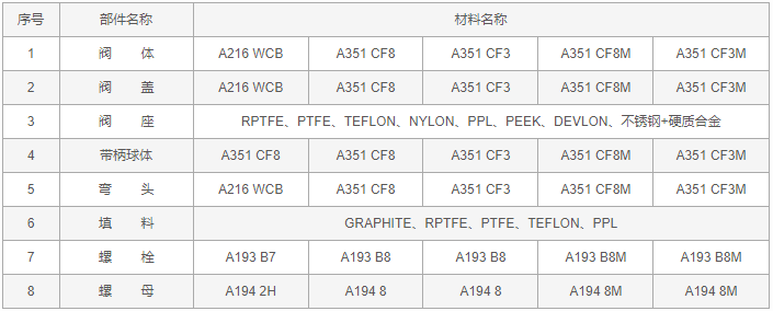 電動Y型三通球閥零件材料: