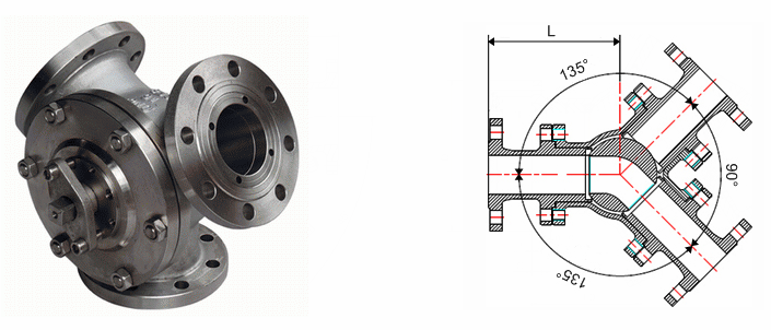 不銹鋼Y型三通球閥流道形式為Y形,有成120度和135度角兩種結(jié)構(gòu)型式,其主體可根據(jù)不同的工況需求采用不銹鋼CF8、CF3、CF8M、CF3M、316Ti及310S等材料鑄造而成,其中CF3M適用于尿素及甲胺液等腐蝕性物料,而310S材質(zhì)則主要安裝在Y型管路輸送系統(tǒng)中,用于800℃以下高溫介質(zhì)流向的切換。