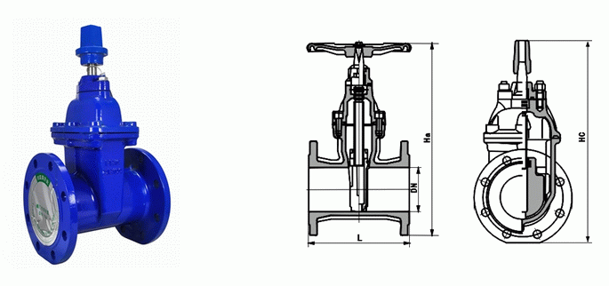 埋地式彈性座封閘閥外形結(jié)構(gòu)圖: