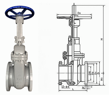 大口徑美標閘閥外形結(jié)構(gòu)圖: