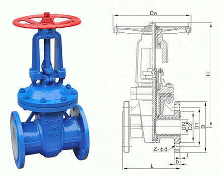 襯氟閘閥外形結(jié)構(gòu)圖: